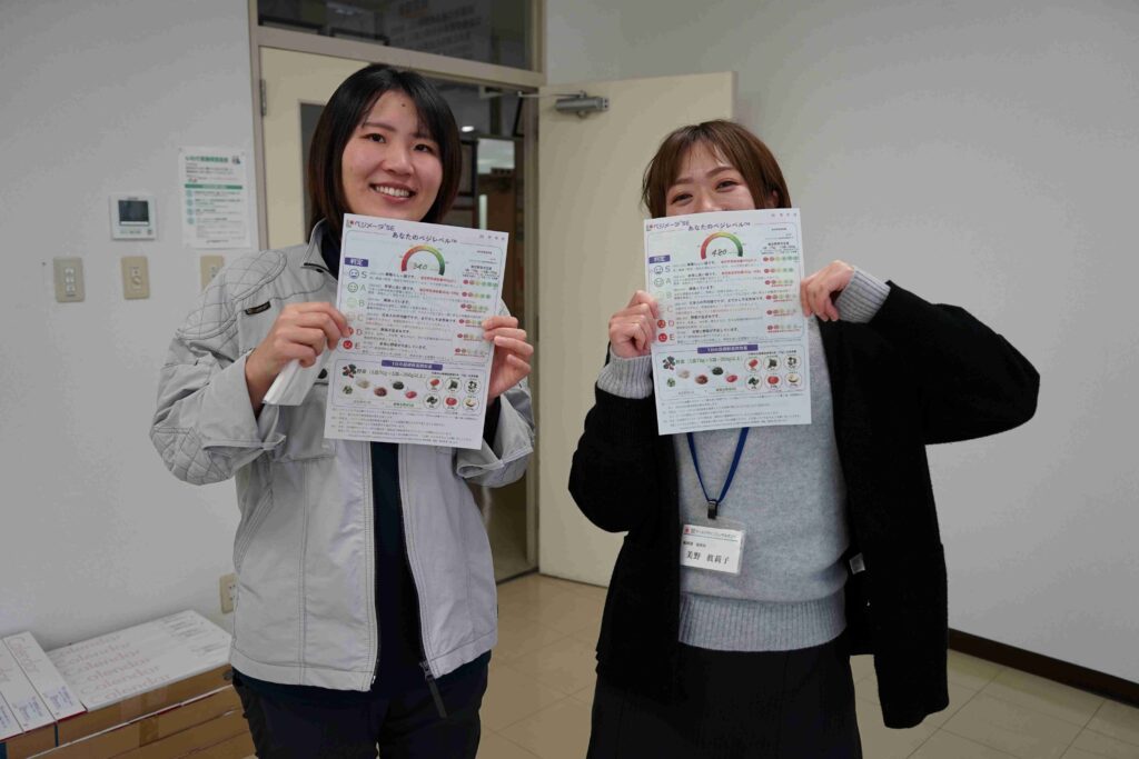 前回の測定後、社員の多くが「野菜を意識して食べる」「野菜ジュースを取り入れる」などの工夫をしたことが、結果に表れています。