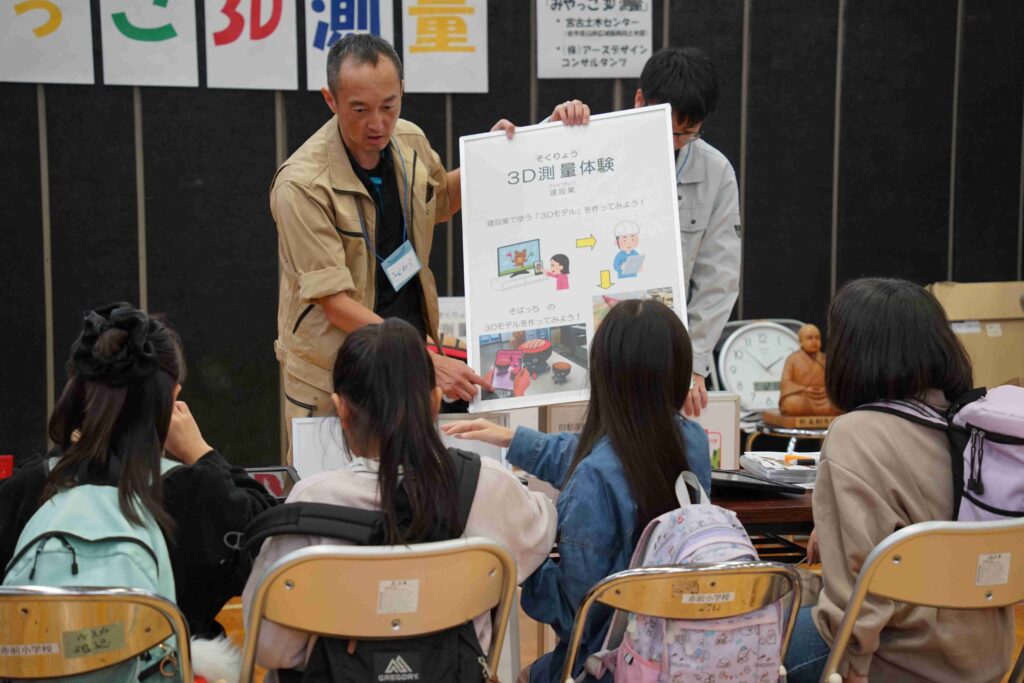 弊社は「みやっこ3D測量・ドローン体験」ブースを担当し、建設業界の魅力を伝える取り組みを行いました。
