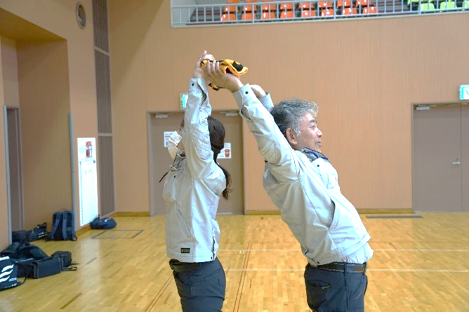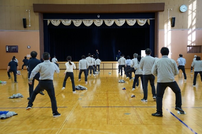 公益財団法人 岩手県スポーツ振興事業団の方々を講師にお招きして、リズム体操、タオル体操をご指導頂きました。音楽に合わせての有酸素運動、タオルを使用した全身運動は、普段でも簡単に楽しく行えそうですので、これからもできることを行って、運動習慣を身に付けていきたいです。