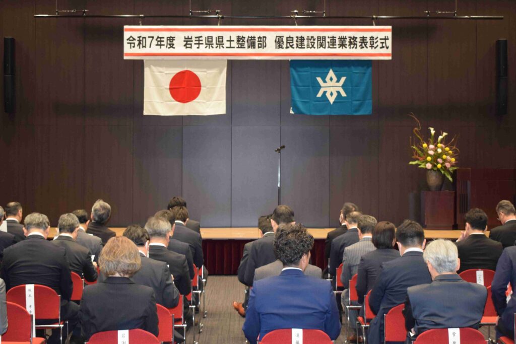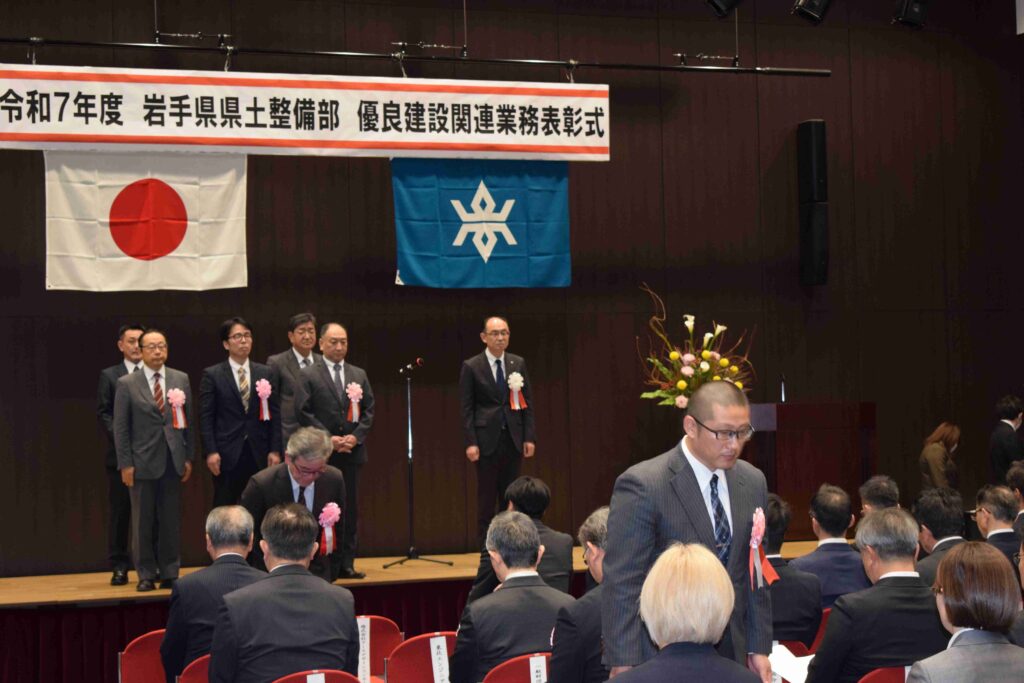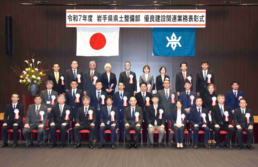 令和7年12月18日(木)、岩手県教育会館にて「令和7年度県土整備部優良建設関連業務表彰式」が行われました。